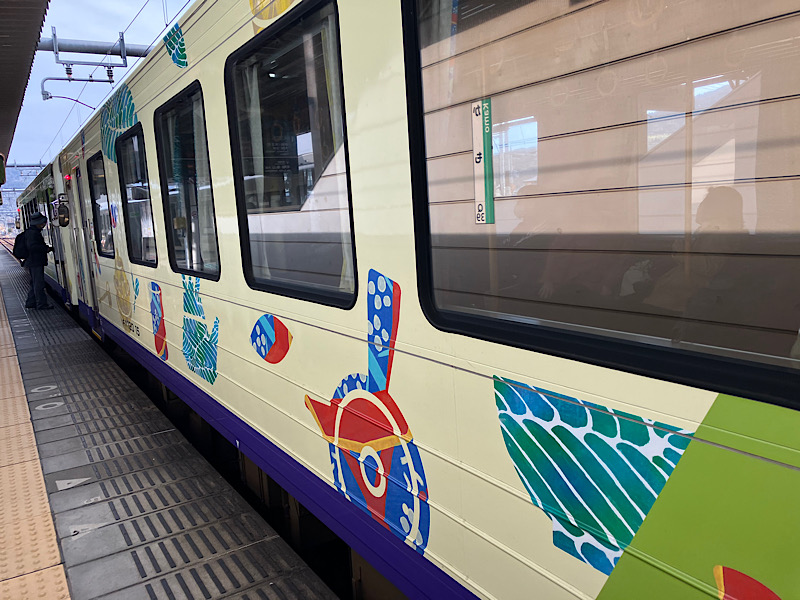 加茂から笠置への電車は可愛らしくて、車内も和柄の日本手拭がぶら下がっていたりしました。