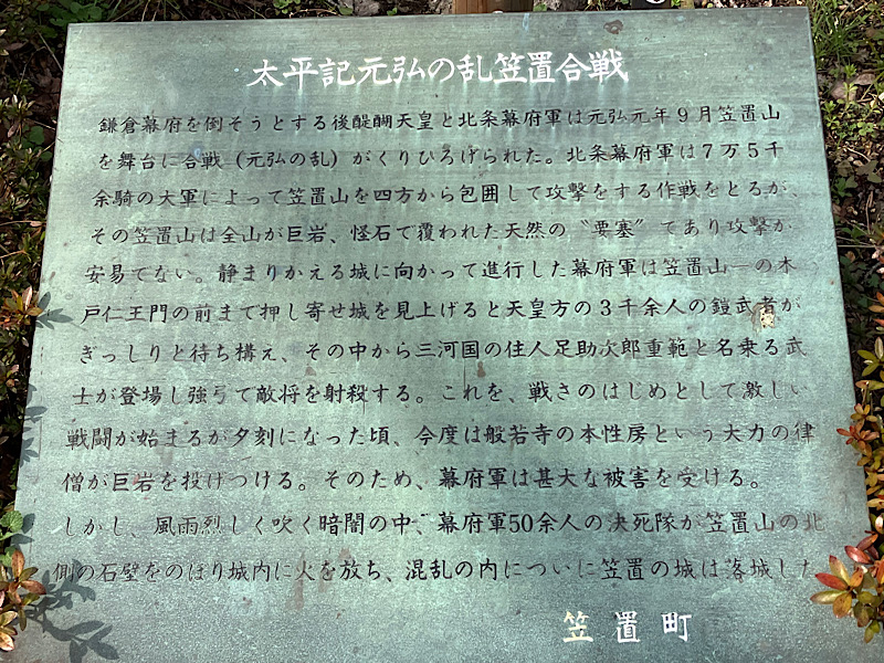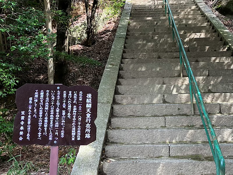政治改革に失敗した後醍醐天皇が京都御所から逃れてきた場所。そのため北条方が攻め入り笠置山にあった49の寺が焼失したそうです。