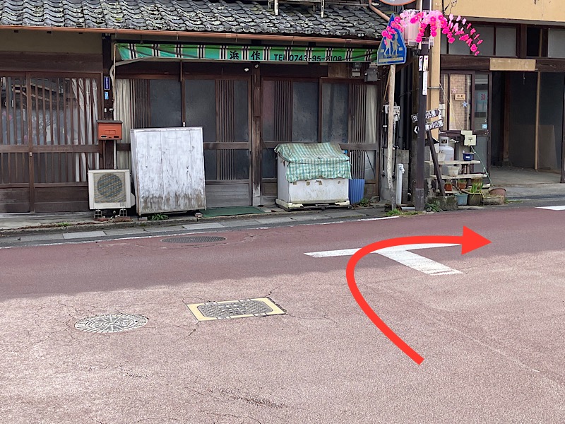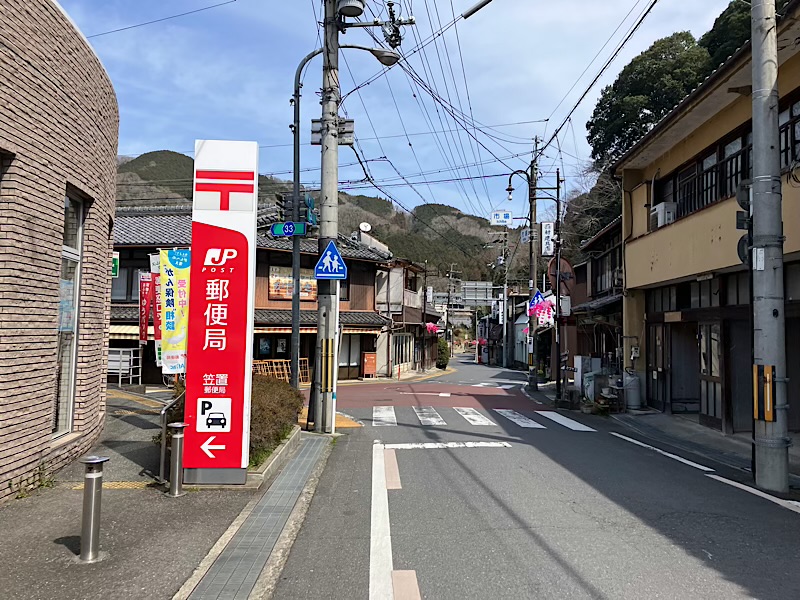 駅へはこの郵便局で左へ。花活の木津川へはこのまま直進です。