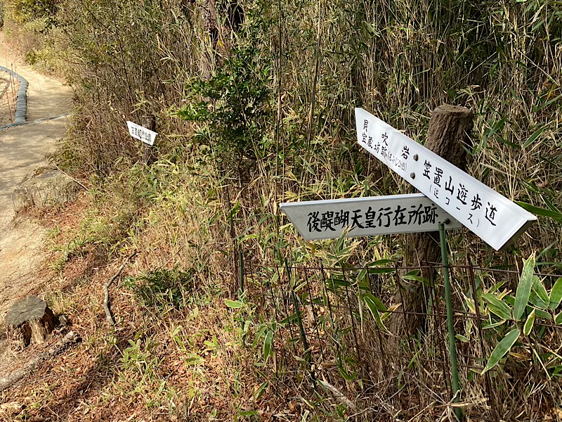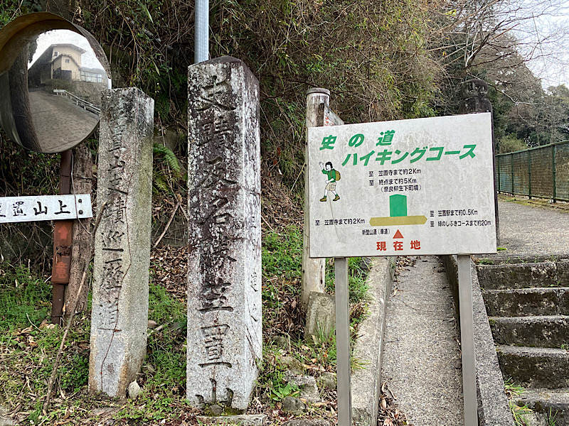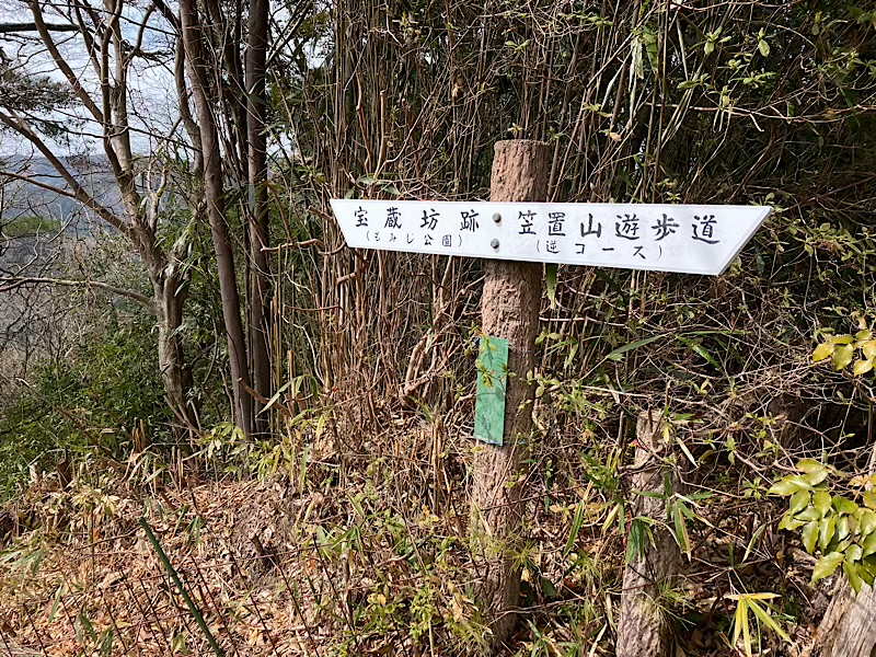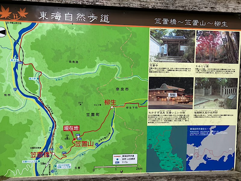 笠置山の山頂と一般的に知られているのは笠置寺の中に位置しているのですが、三角点は柳生方面へ東海自然歩道で往復約3km、約1h30弱になります。