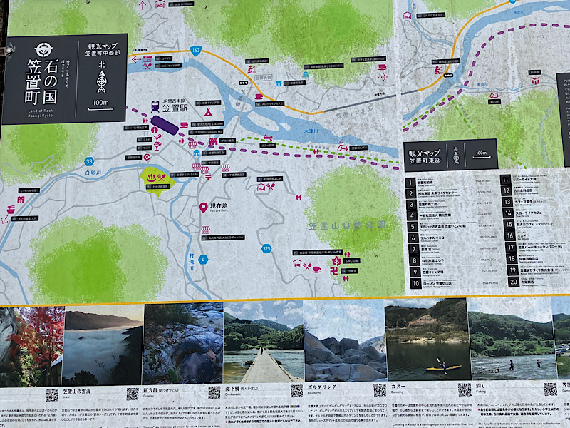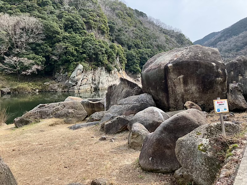この先を行くと川沿いに大小の岩が点在しており、笠置ボルダーと呼ばれるボルタリングの聖地があります。
