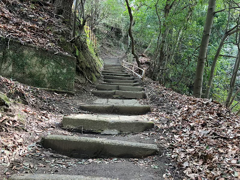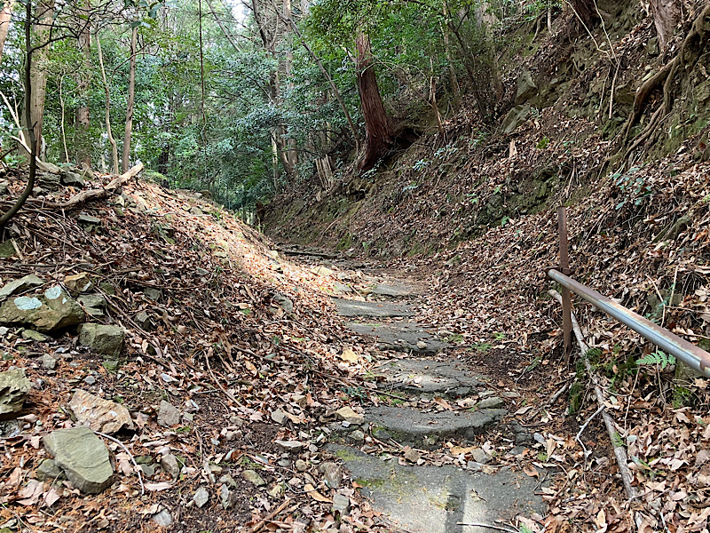階段を上り切ると、いよいよ山の中へ。