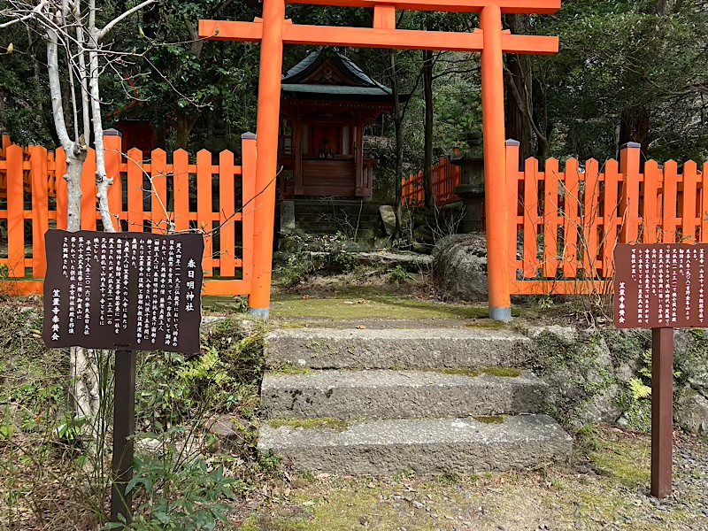 なかなかの階段を登り切ると上の門の前に出ます。後醍醐天皇行在所跡。実際は山中のどこにいらしたかは不明のようです。
