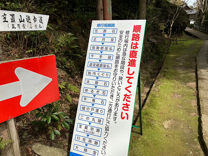 笠置駅 6分 ➾ 笠置山登山口 30分 ➾ 笠置寺(行場巡り1周800m 約40分)30分 ➾