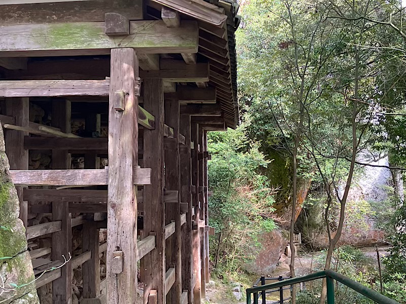 行場へ入るために身を清める滝がない代わりに、ここをくぐり抜けることで身を清めます。