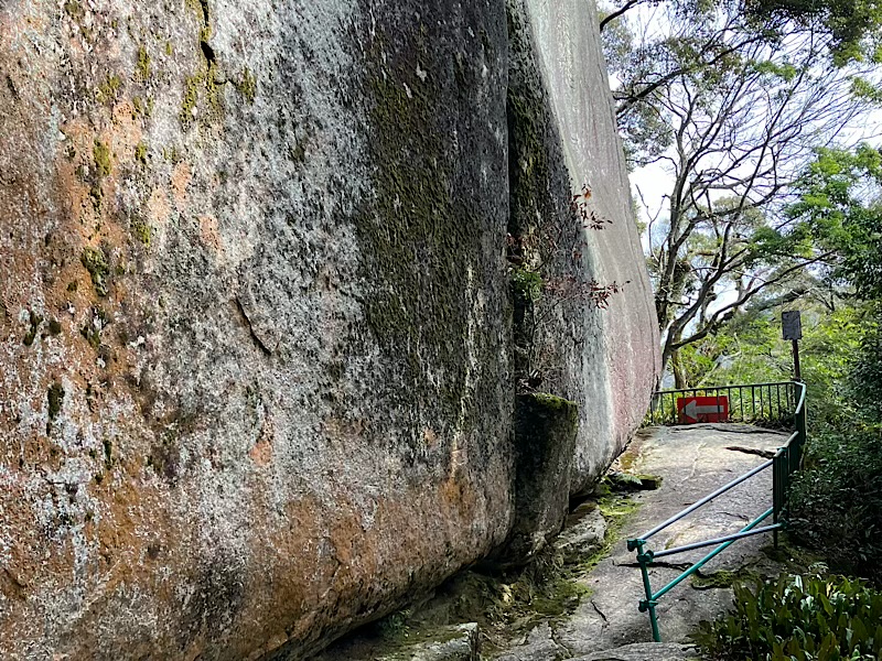 でかっ!古くは行道石と呼ばれ、石の割れ目を通り、石の周りを周回する事が修行だそうです。