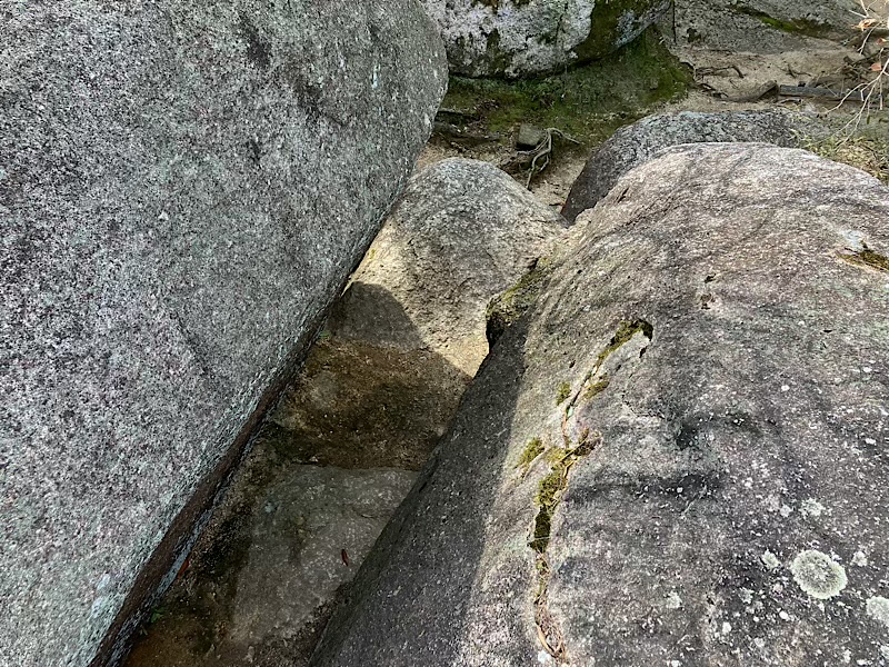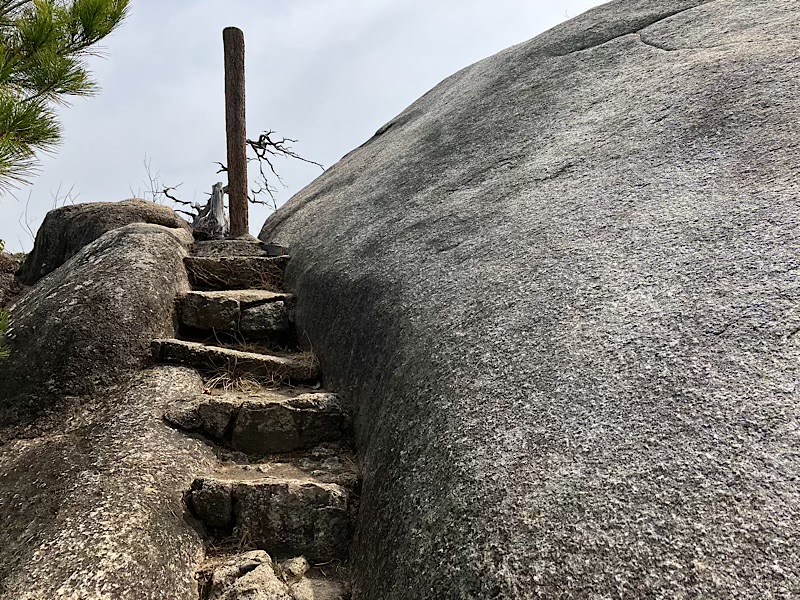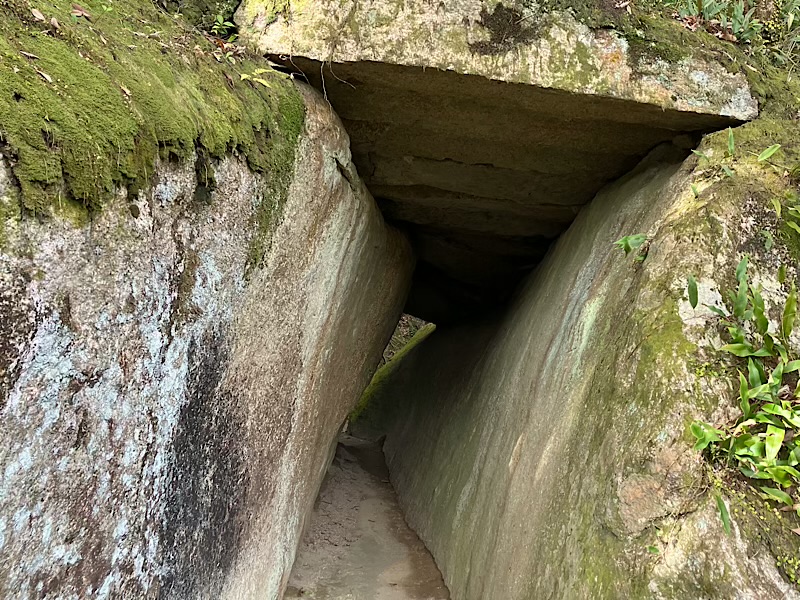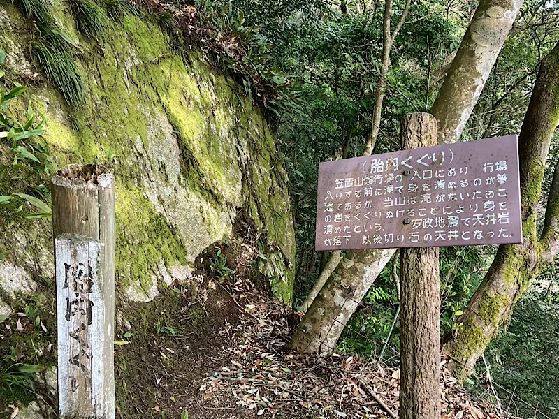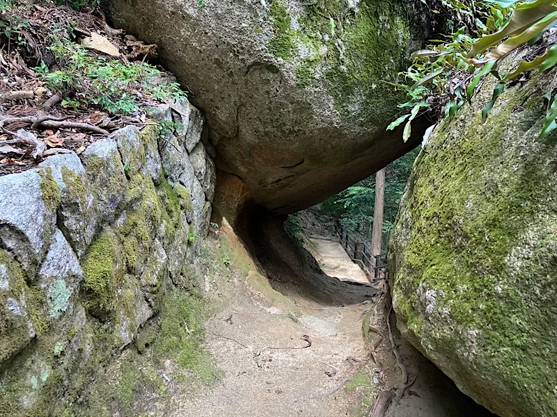 この石の割れ目を進みます。蟻の門渡り?調べてみるとどちらの表記も使われてますが、一般的には門のようです。山の尾根の切り立った崖などの細い道。修行の場となったりしている所。