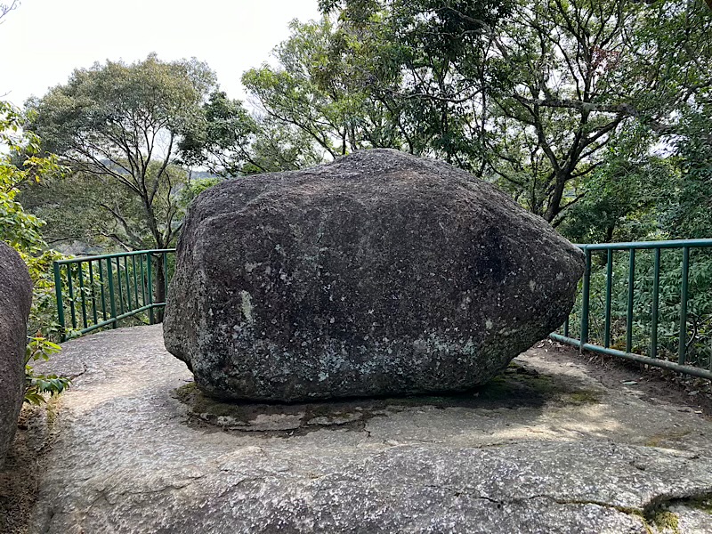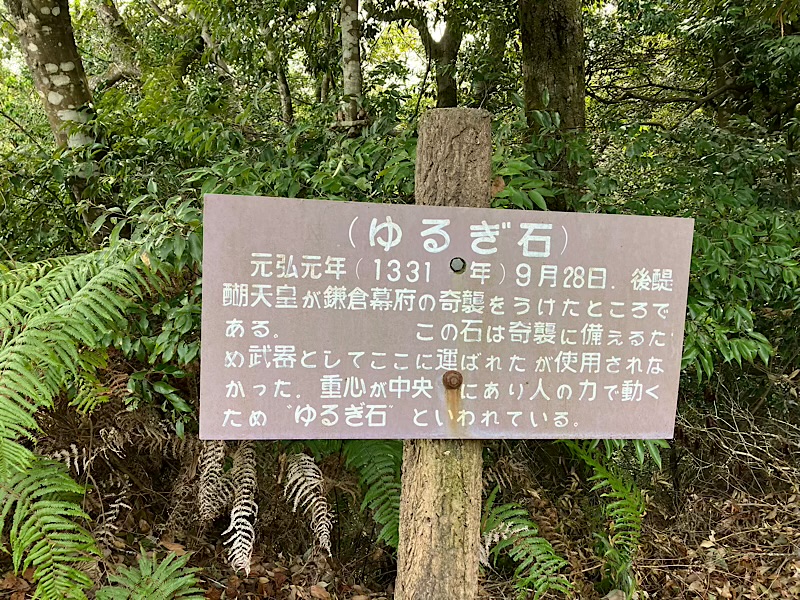 元弘の乱で下から攻めてくる幕府軍に対して弓矢で戦っていたけども、武器が尽き、石を武器として落としていたそうです。その名残がこのゆるぎ石。