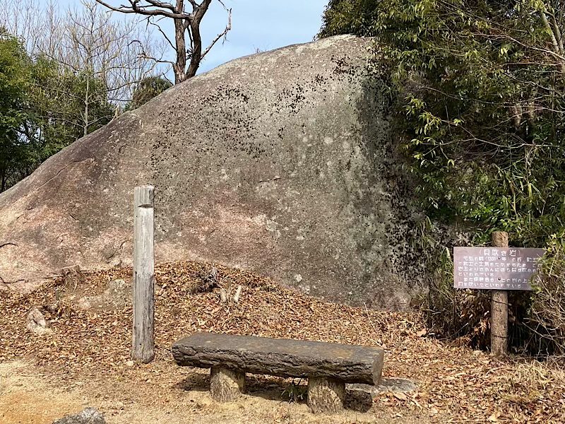 元弘の乱で、合図や士気を鼓舞するためにこの岩の上で法螺貝を吹いていたと言われています。また修験者がこの上で法螺貝を吹いていたとも言われています。