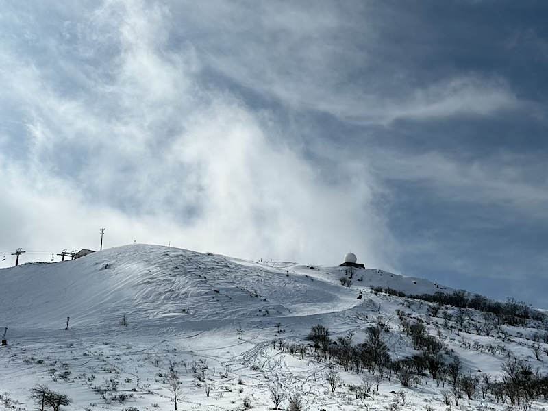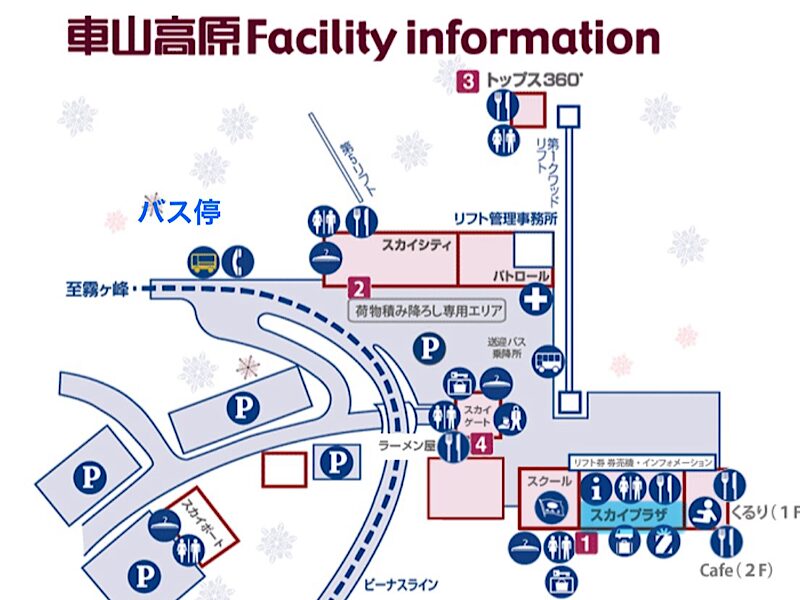 バスに乗ること約1時間で車山高原に到着。バスを降りたところが車山高原SKYPARKスキー場です。