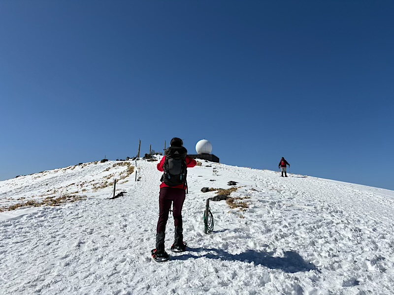 ワカンを装着して、車山山頂を目指します。ってもう見えてますが。。