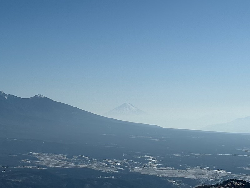 木枠の真ん中八ヶ岳の向こうにうーっすら三角の富士山が見えませんか?肉眼ではもう少し見えましたが、写真だとぼんやり過ぎますね。(笑)