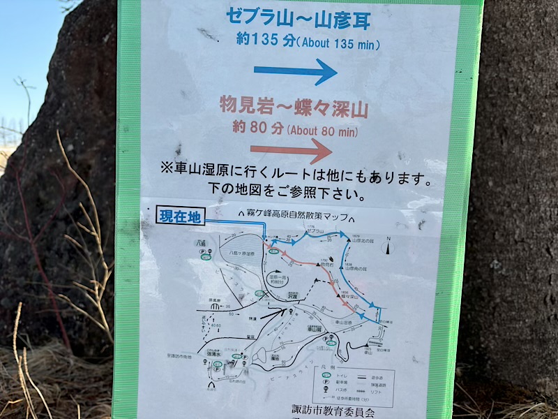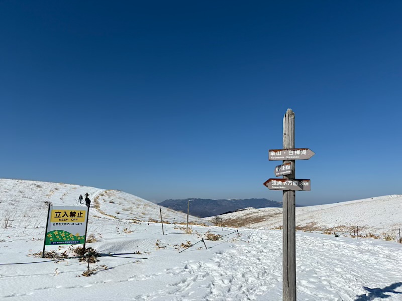 リフトを利用せずバス停から歩いて上がる場合は、車山山頂への道がないため、一旦車山乗越から車山肩、車山山頂を目指すことになります。