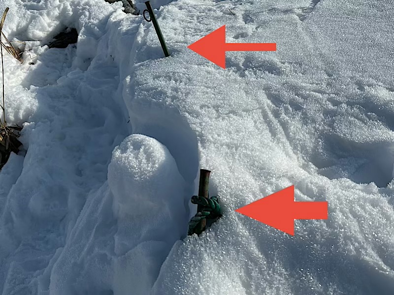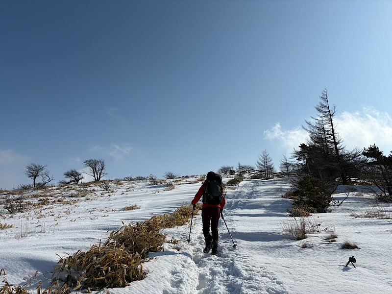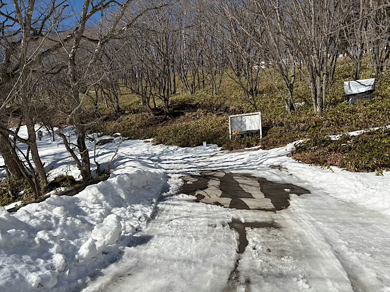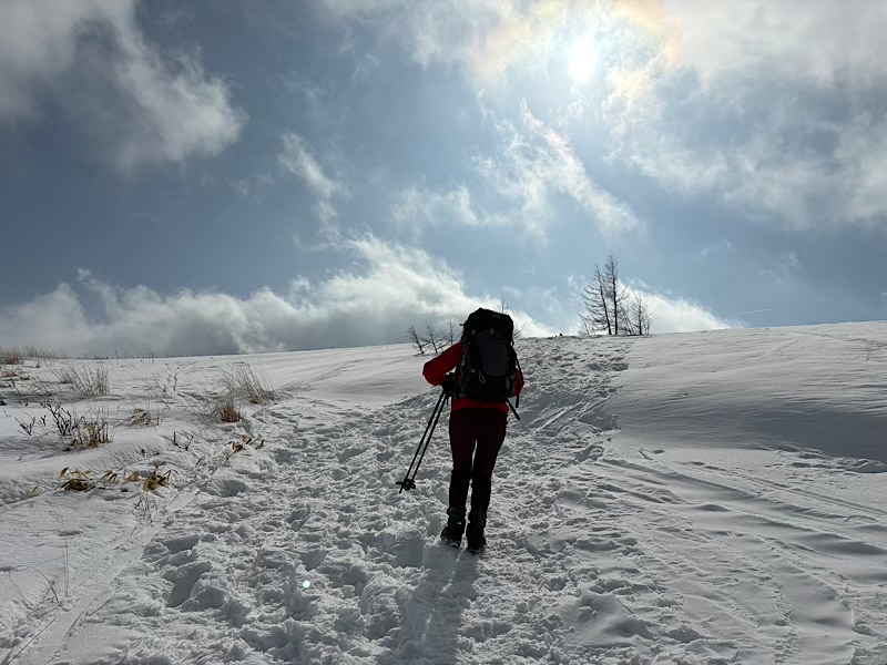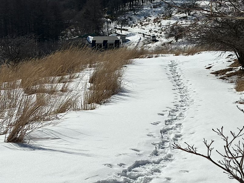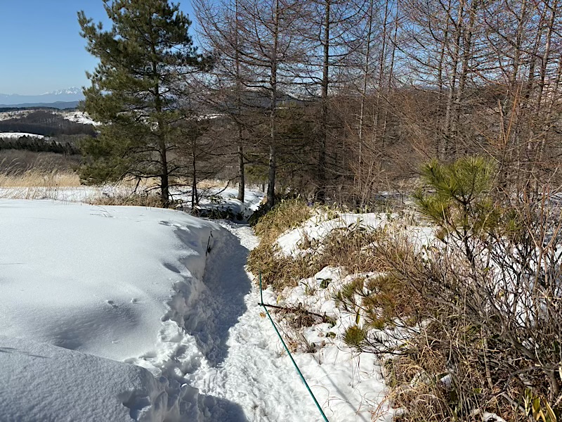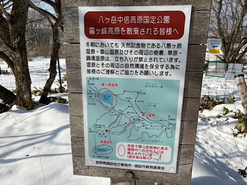 この先に湿原がありますが、雪のシーズンは分かりにくく間違って入り込んだトレースがあるとその後に続く人が誤ってまた入り込んでしまいます。湿原に入り込まないよう気を付けないといけないですね。
