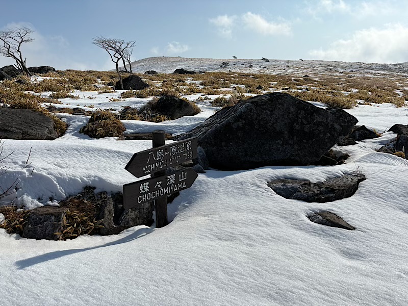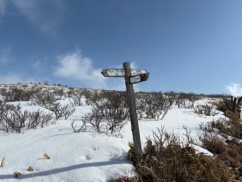 左は南ノ耳、北ノ耳方面。湿原を出たあと分かれたゼブラ山への分岐。ゼブラ山の方に行くとこの分岐を下りてきます。