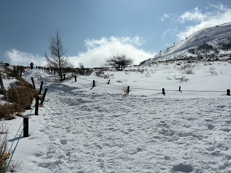 リフトは往復券だったので、車山山頂に戻ればリフトで下りることもできますが、時間があるのでスキー場の横を歩いて下山します。