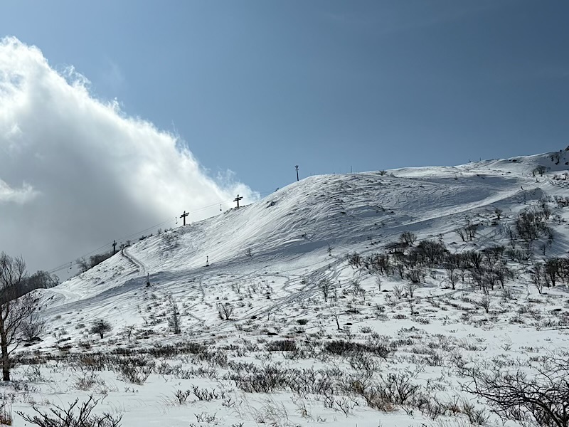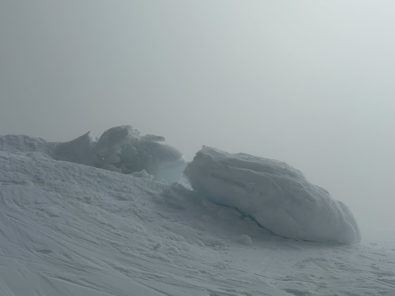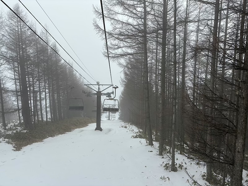 コースを横断するにはスキーヤーに衝突しないように気を付けないといけないけど、見えない。滑ってくる音を頼りに走って何とか横断。平日でスキーヤーが少なくて本当に良かったです。