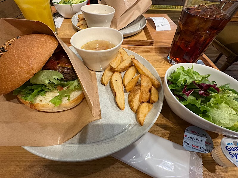 蓼科牛100%八ヶ岳バーガー。とっても美味しい!パンもよくあるバーガー用のバンズではないのですがこれがまた美味しい。