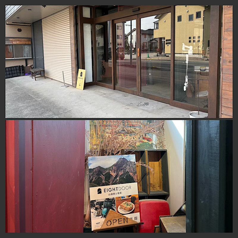 インスタでフォローしている方が紹介されて気になっていた山道具と喫茶Eightdoorさんへ。