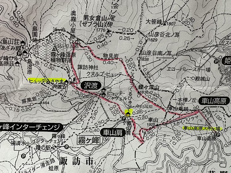 車山肩(コロボックルヒュッテ)30分 ➾ 沢渡(ヒュッテジャヴェル)20分 ➾ ヒュッテみさやま