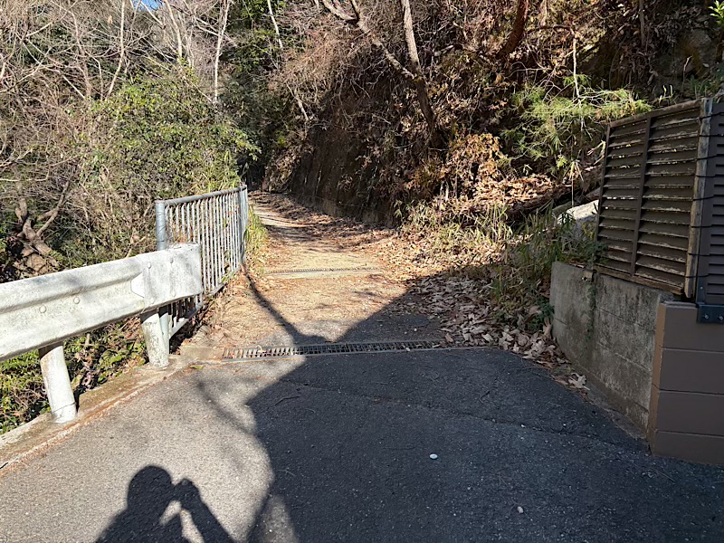 ここを下りたら道路に出ます。
