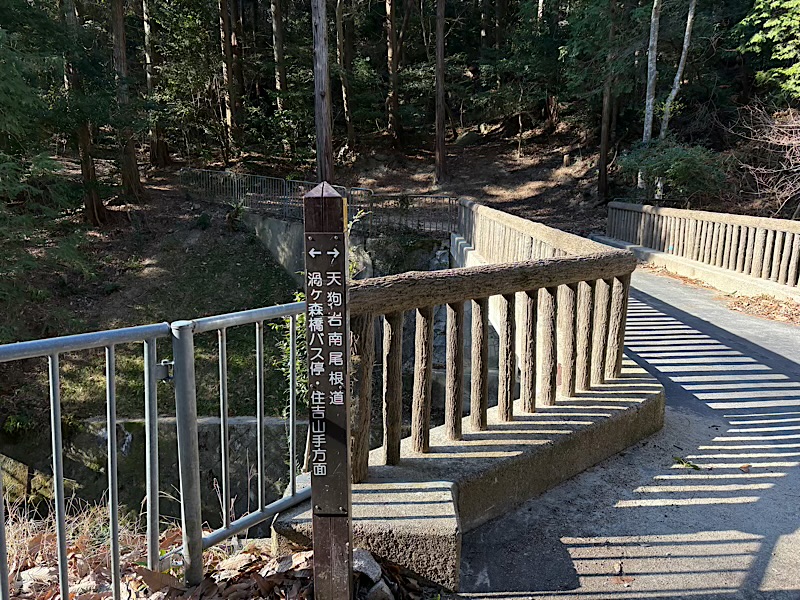 天狗岩南尾根への登山口は橋を左手に直進した先のここからです。