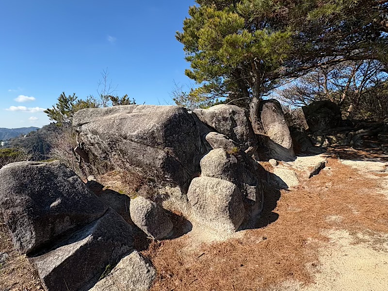 六甲山系には天狗岩と呼ばれる場所が何箇所かあります。昔、行者が岩で修行をしているのを見た人が天狗と思い天狗岩となった。多くはそんな感じかと思いますが、ここは、岩が天狗の顔に見える天狗岩だそうです。ですが予備情報を得ず行ってしまったため漠然と撮った岩岩の写真となってしまいました。