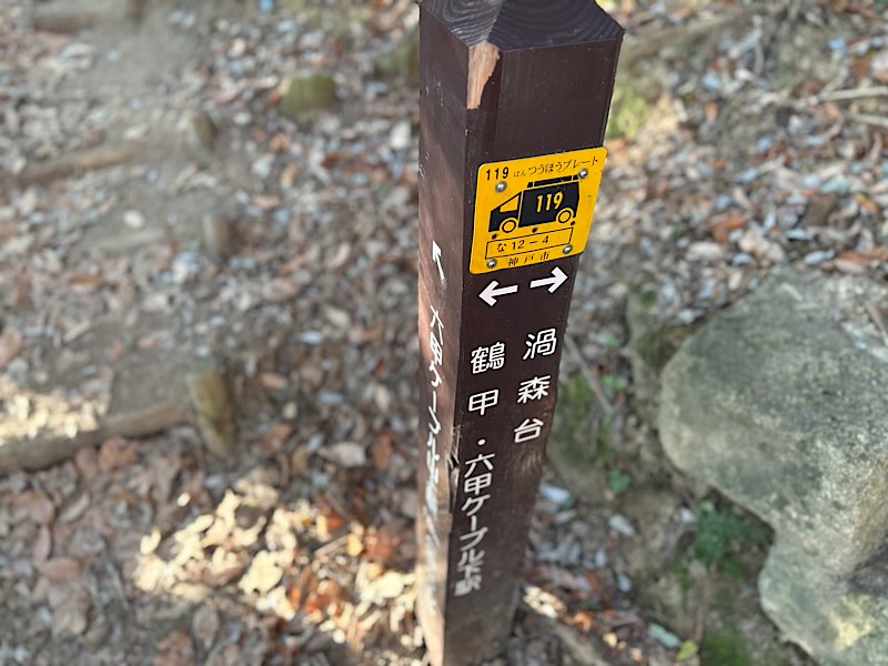 ここから六甲駅へはバスがあります。歩く場合は約30分です。